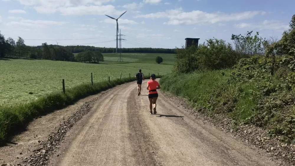 Direkt vom Start am Fritz-Steinhoff-Park ging es in Richtung Hohenlimburg. Es dauerte nicht lange und man erreichte die ersten Naturschutzgebiete, wo man an blühenden Rapsfeldern vorbeigelaufen ist. Beim Lauf über Wiesen konnte man schon die schöne Landschaft überblicken. Bei Kilometer 5 kam der erste Verpflegungspunkt, wo sich die Läufer des 10-km-Laufes und des Halbmarathons trennten.